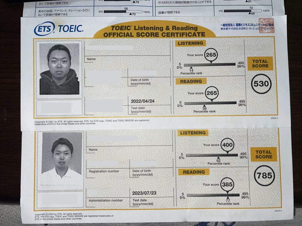 僕がTOEIC700点台を目指したときのスコアは、530点でした。