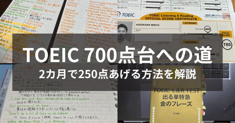 400点未満の人が2ヶ月でいきなり700点というのは現実的に厳しい。逆に600点以上ある人は、方法論よりも演習量の問題なので、この記事が参考になるかは微妙です。