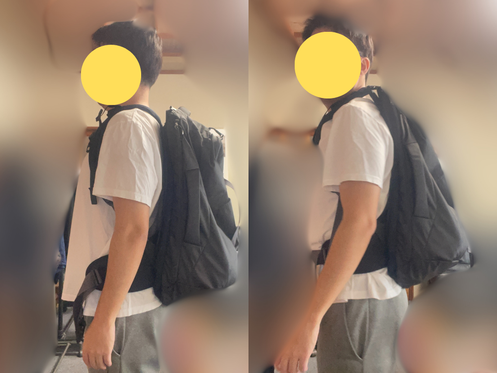 バックパックは実際に背負って自分の体にフィットするかを必ず確かめてください!