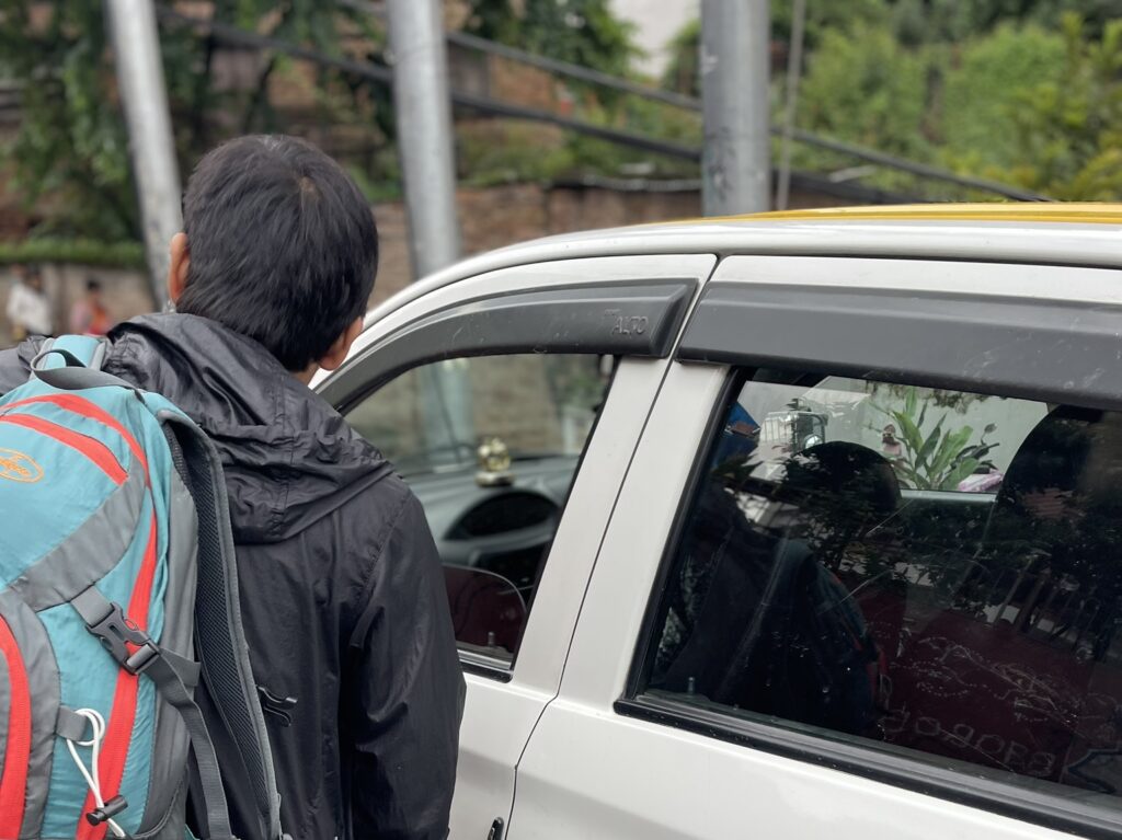 タメル地区で見つけた流しのタクシーを捕まえてトレッキングのスタート地点へ!