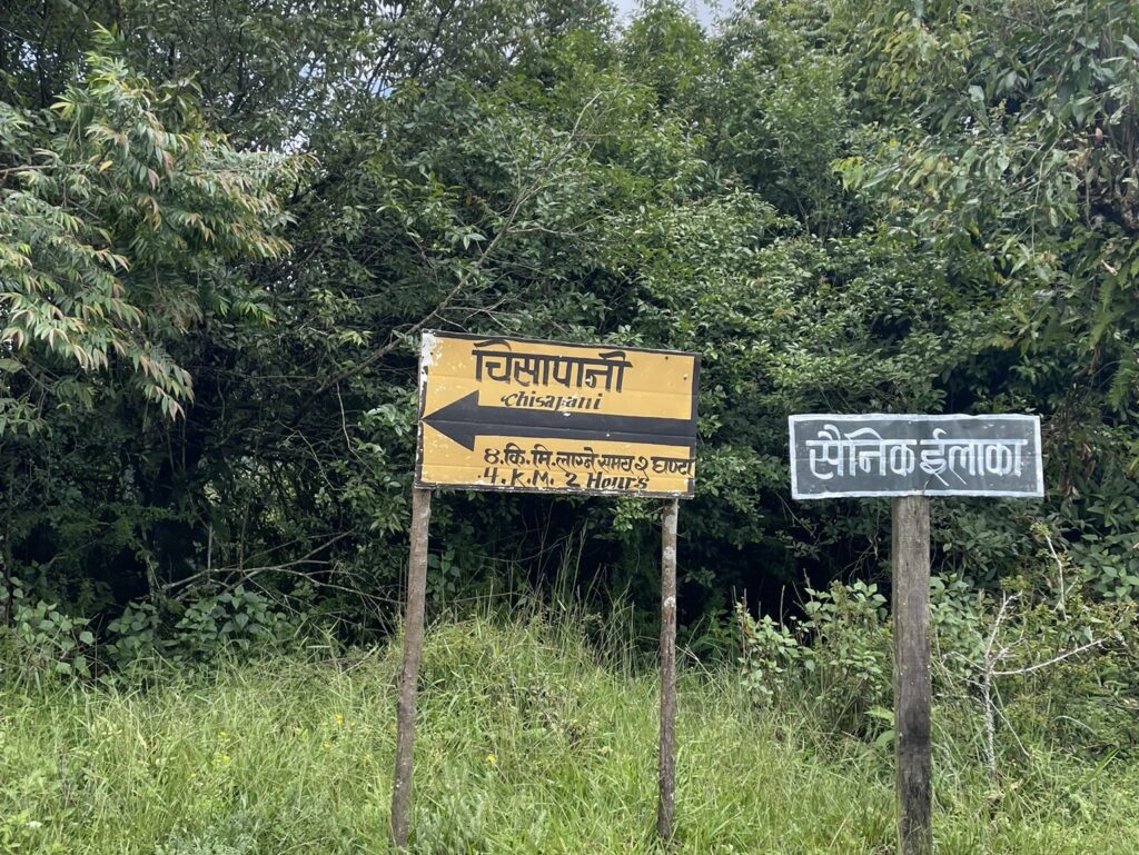 チサパニからナガルコットへは身分証明書の提示し、許可証を持って歩く。道中、ネパール軍兵士と遭遇した時は許可証を見せないといけない。