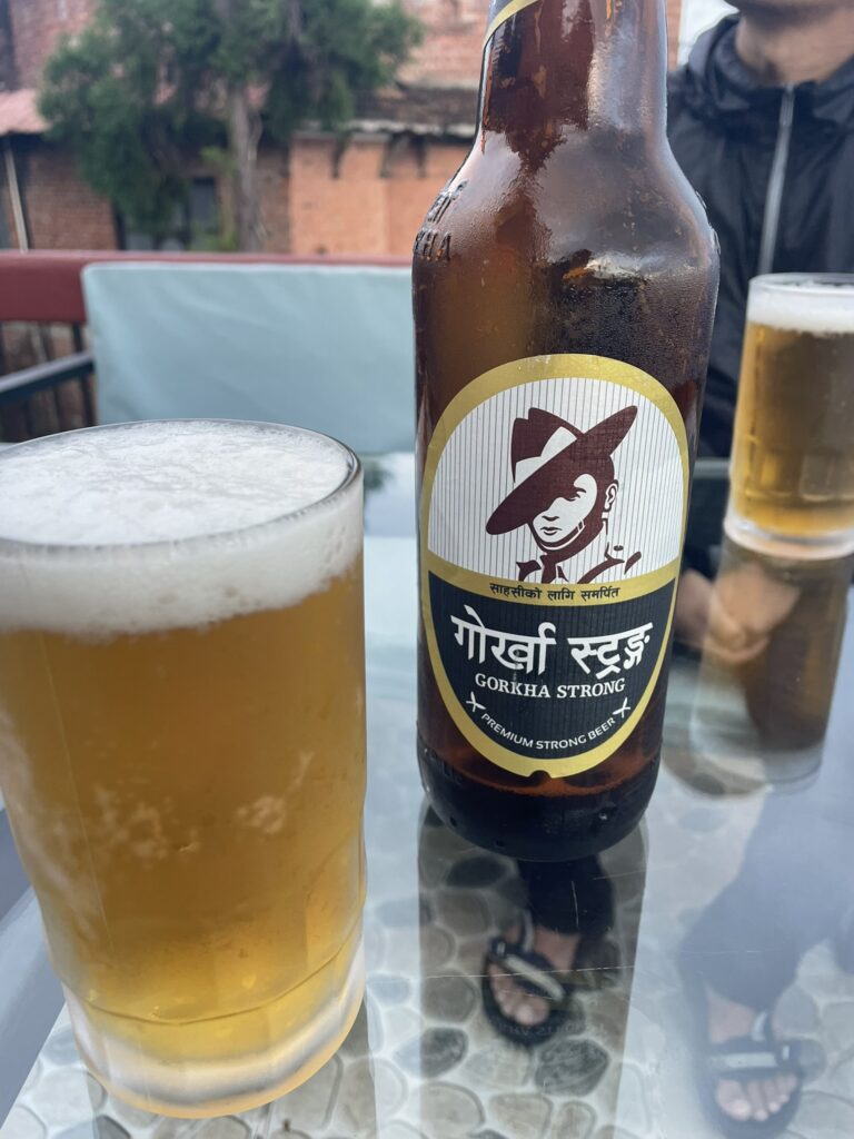 ゴルカビールで乾杯。ダルバートが来るまでビールを飲みながらガイドと語る。