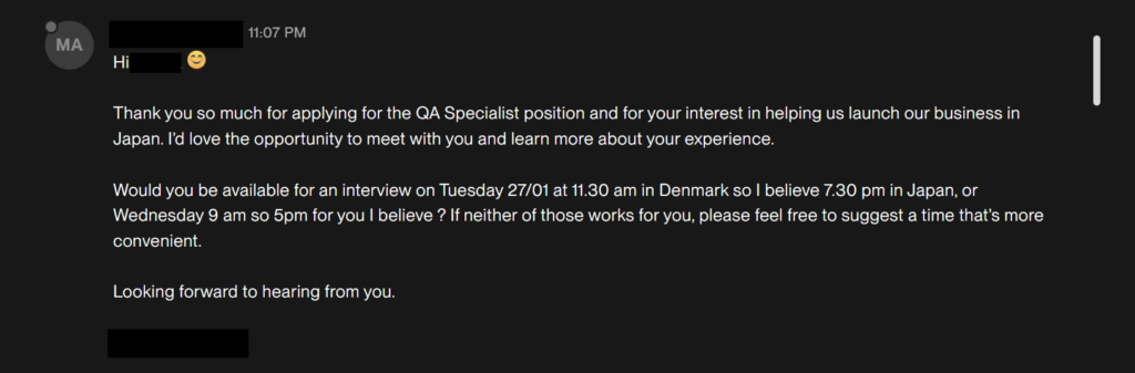 面談してくれたのは市場開拓側のリーダー的な方で、デンマーク企業での勤務歴は約5年。